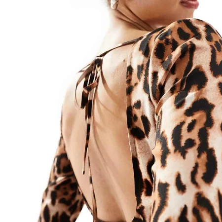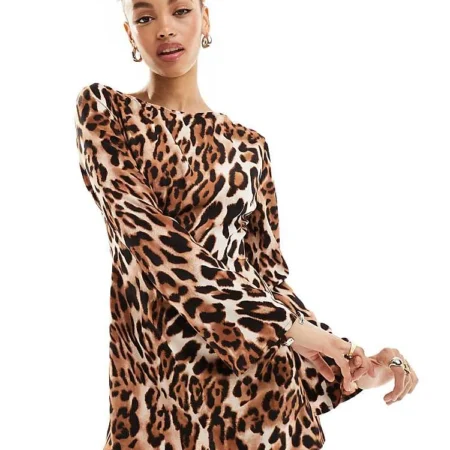 Lioness Flared Sleeve Tie Back Mini Shift Dress In Leopard Print For Women