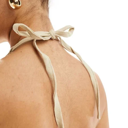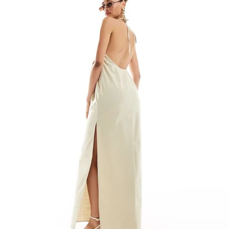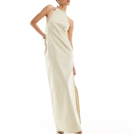 Lioness Halterneck Low Back Maxi Dress In Beige For Women