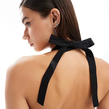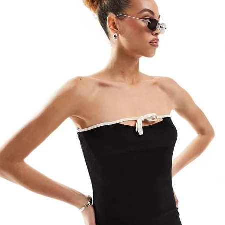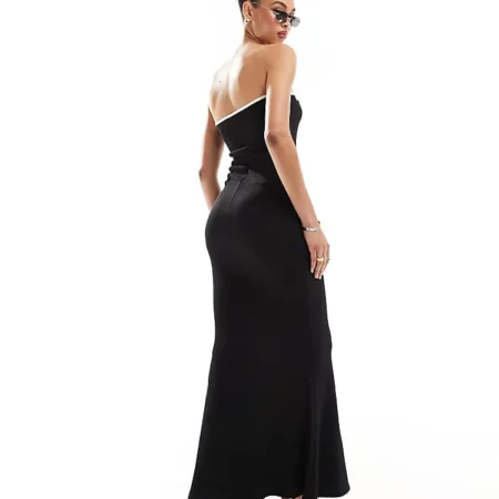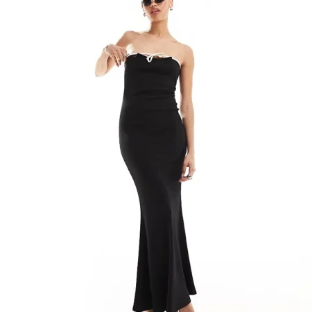 Lioness Bandeau Contrast Trim Bow Detail Maxi Dress In Black For Women