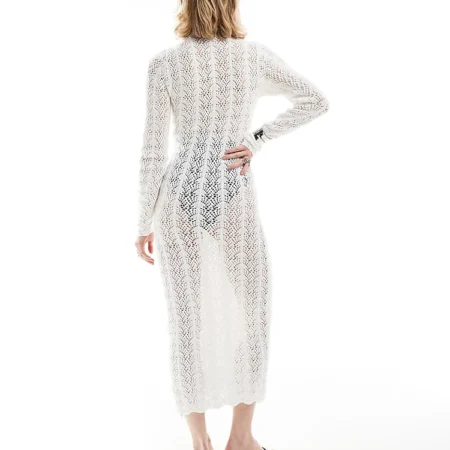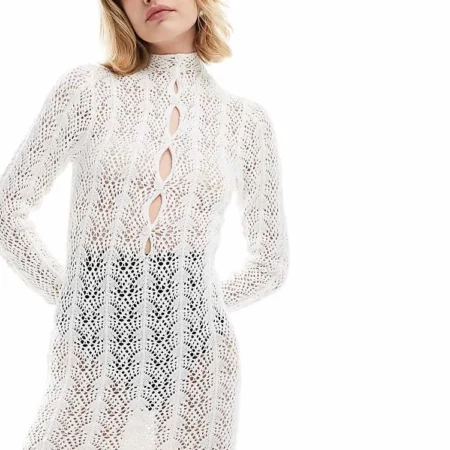 Lioness Crochet Semi-sheer High Neck Cut Out Midaxi Dress In White For Women