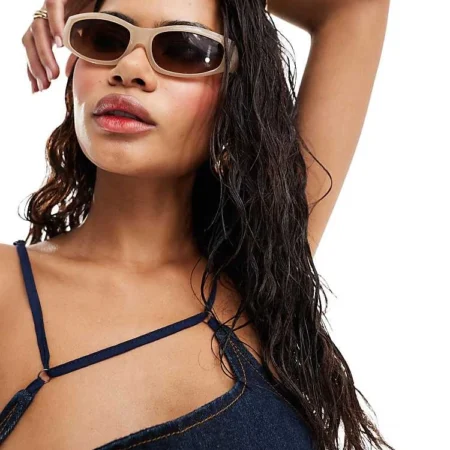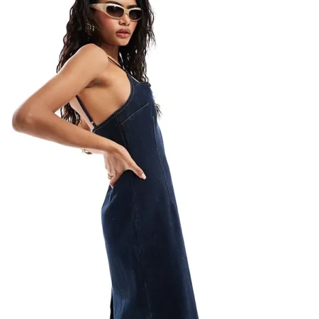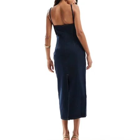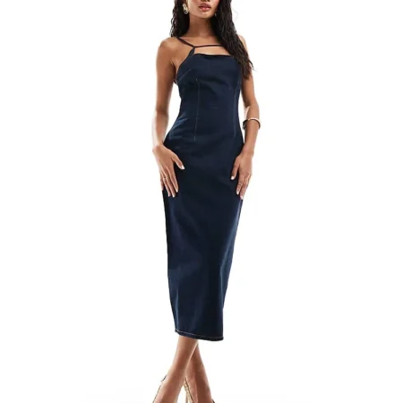 Lioness Denim Strappy Square Neck Midi Dress In Indigo For Women