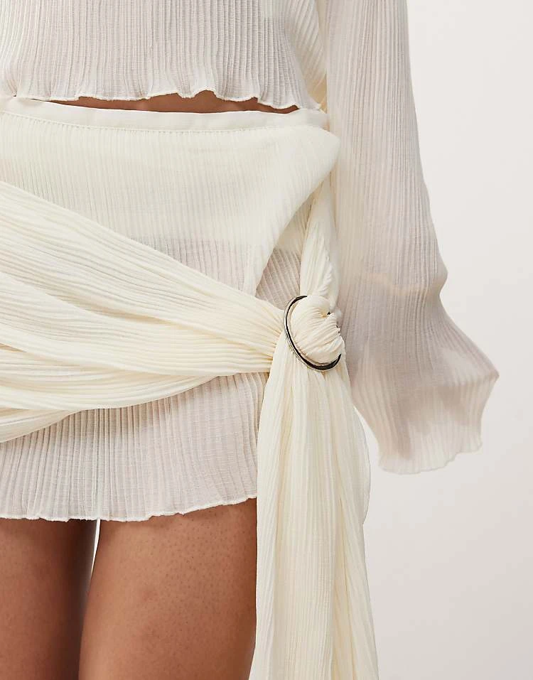 Lioness Plisse Mini Skirt With Drape Detail Co-ord In Ivory For Women