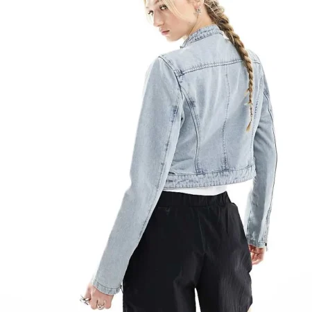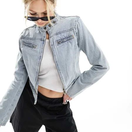Lioness Denim Moto Jacket In Washed Blue For Women