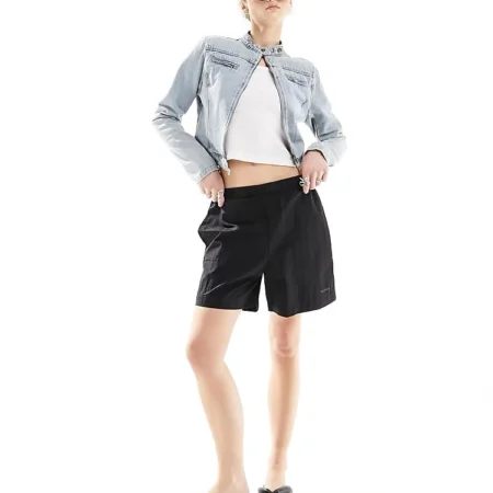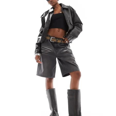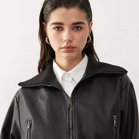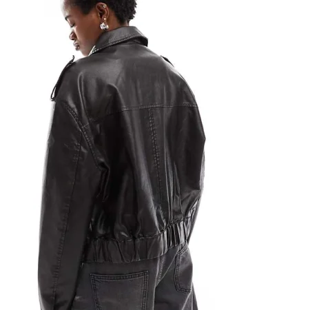 Lioness Boxy Leather Look Bomber Jacket In Black For Women Washed Black