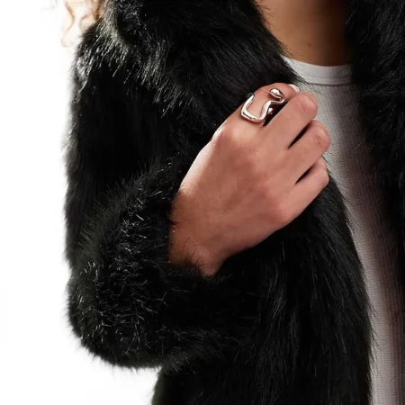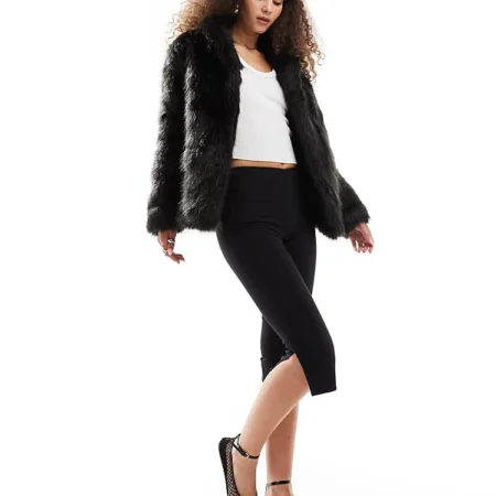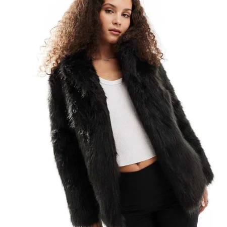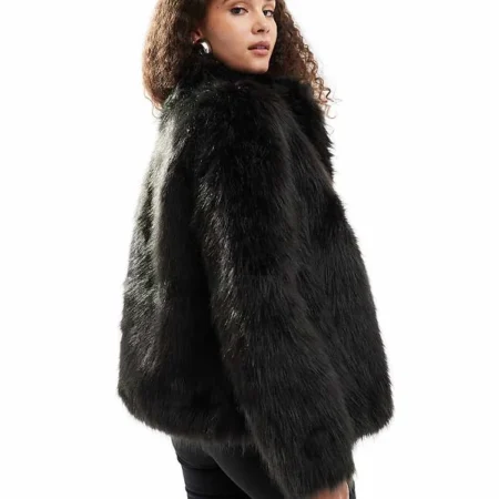 Lioness Faux Fur Coat In Black For Women Onyx