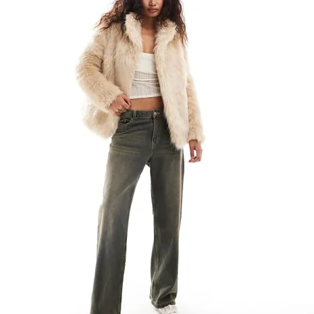 Lioness Faux Fur Coat In Beige For Women
