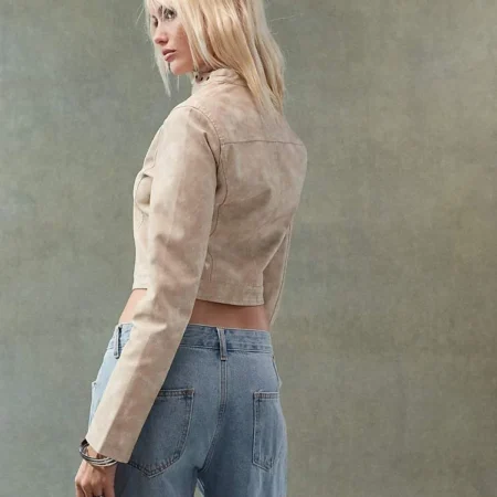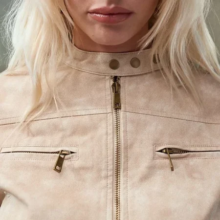 Lioness Fitted Leather Look Moto Jacket In Beige For Women