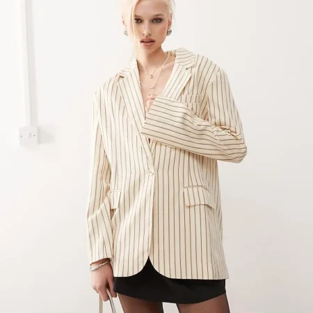 Lioness Pinstripe Blazer In Cream Stripe For Women