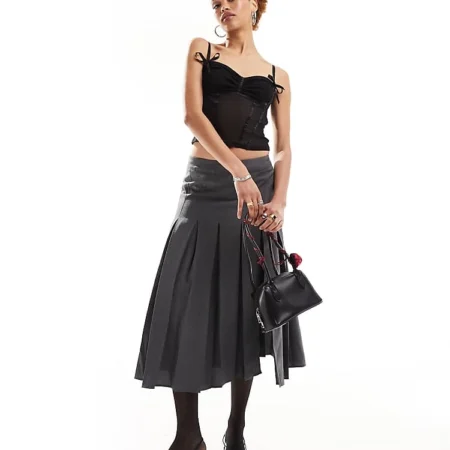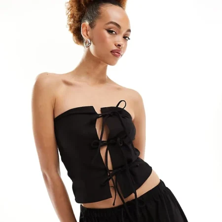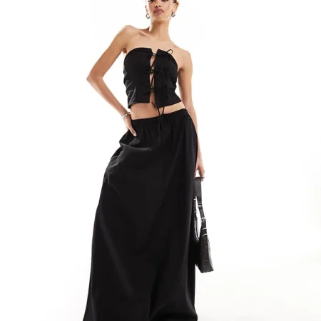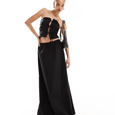 Lioness Bandeau Tie Front Top And Skirt Co-ord In Black