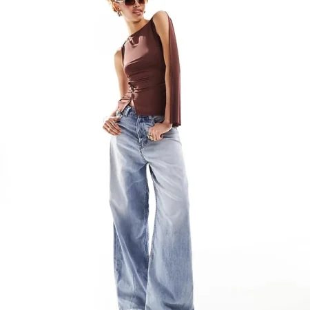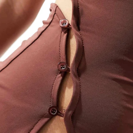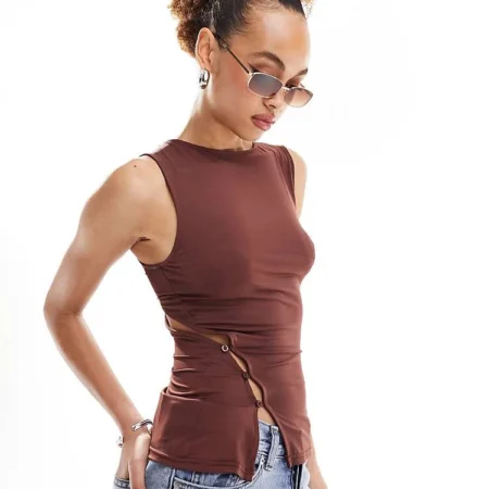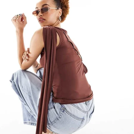 Lioness Asymmetric Button Detail Drape Shoulder Top In Brown For Women Chocolate