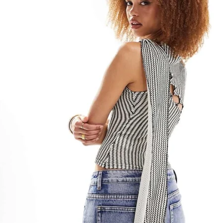 Lioness 90s Plisse Bandeau Top With Neck Scarf In Black For Women