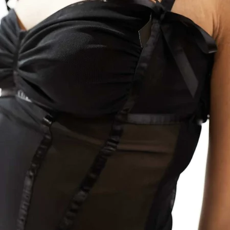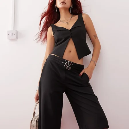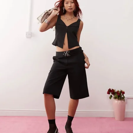 Lioness 90s Strappy Top And Low Waisted Short Co-ord In Black